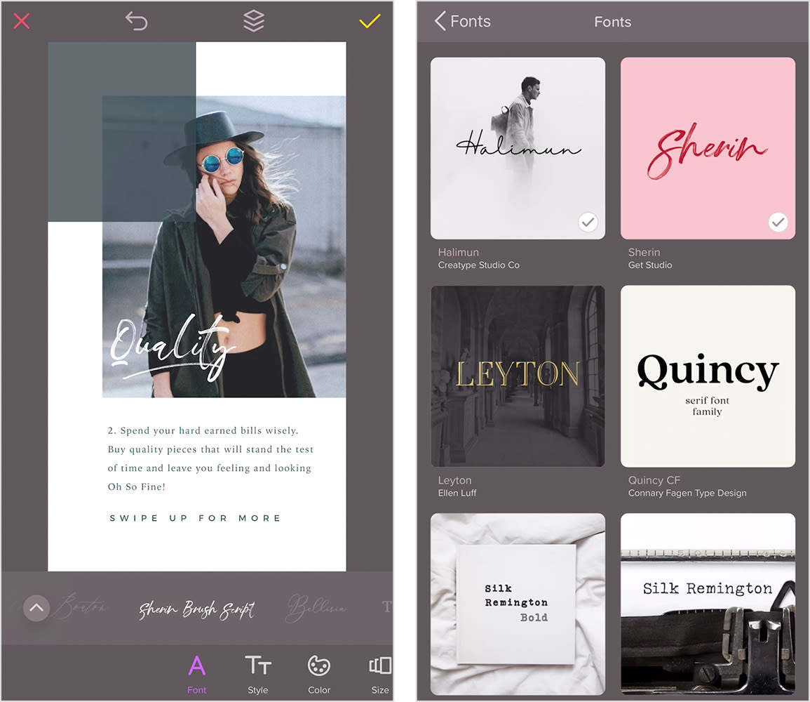 You can also browse the huge selection of fonts that Over offers until you find one or two that suit your brand and aesthetic. Over even has "paired fonts" that can help take the guesswork out of matching different fonts together, but here are some tips if you're picking out fonts for your Instagram Stories designs:
