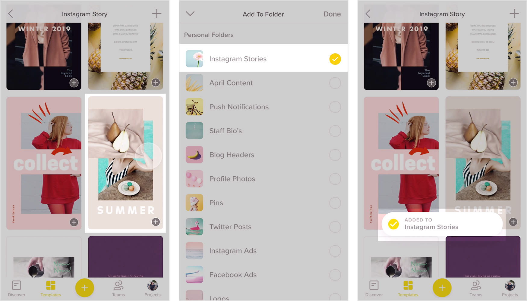 So staying consistent with what style of template you use is important! To help you do that, we recommend saving the templates you love to a folder in the Over app for fast and easy access later.