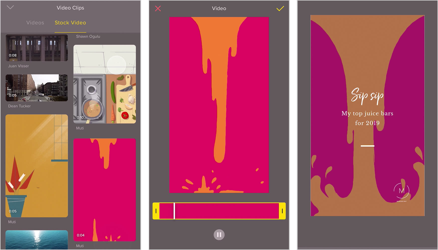 With Over, you can include your own branded images and videos into your template designs. Or you can easily find gorgeous stock photos using Unsplash or Pixabay in the app.